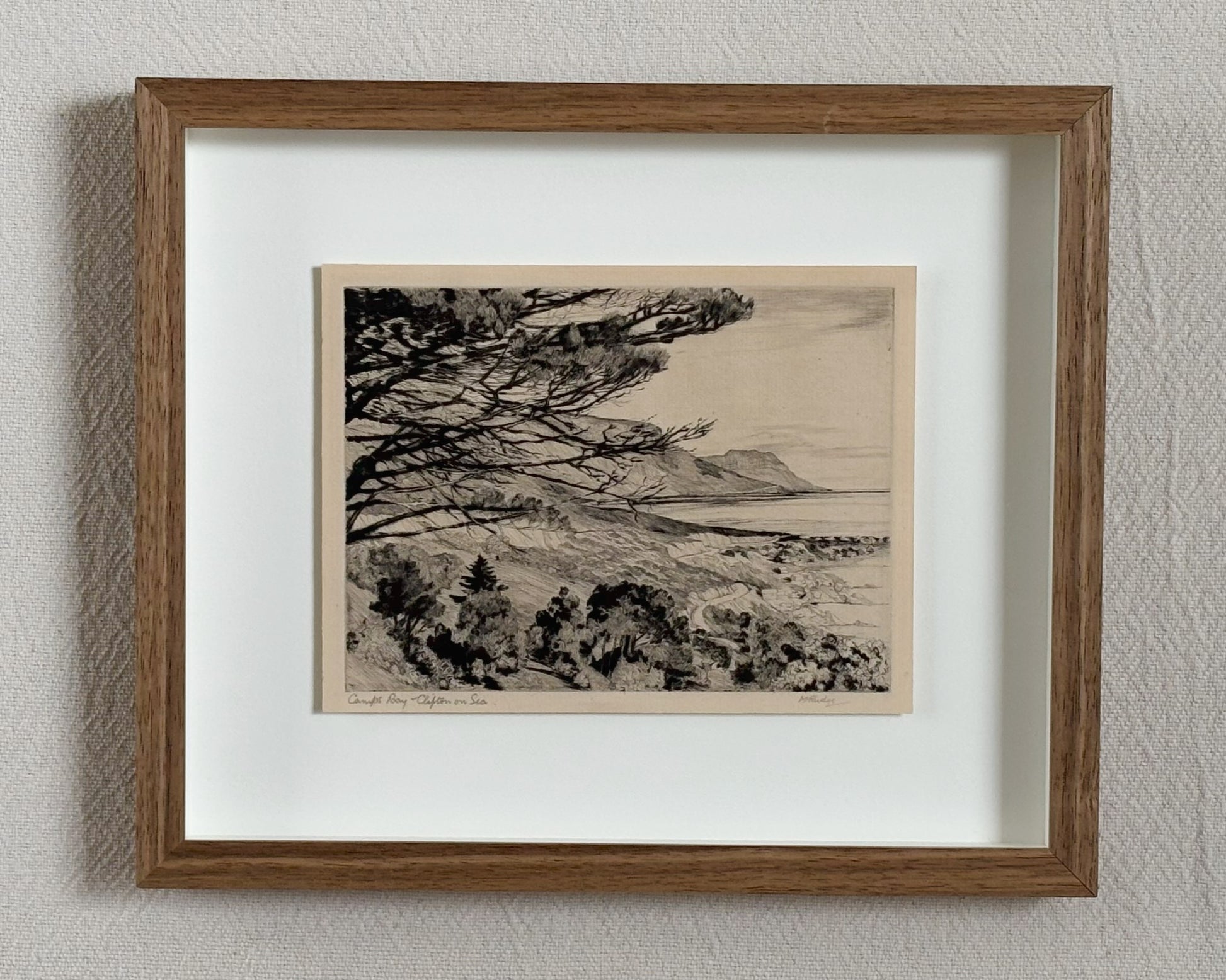 Vintage Camps Bay Clifton on Sea etching, signed M. Rudge.