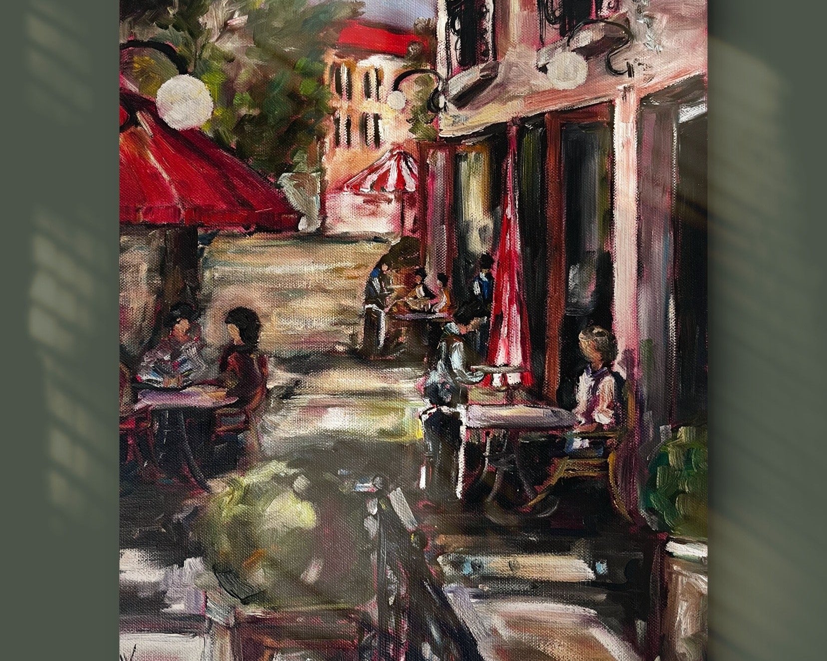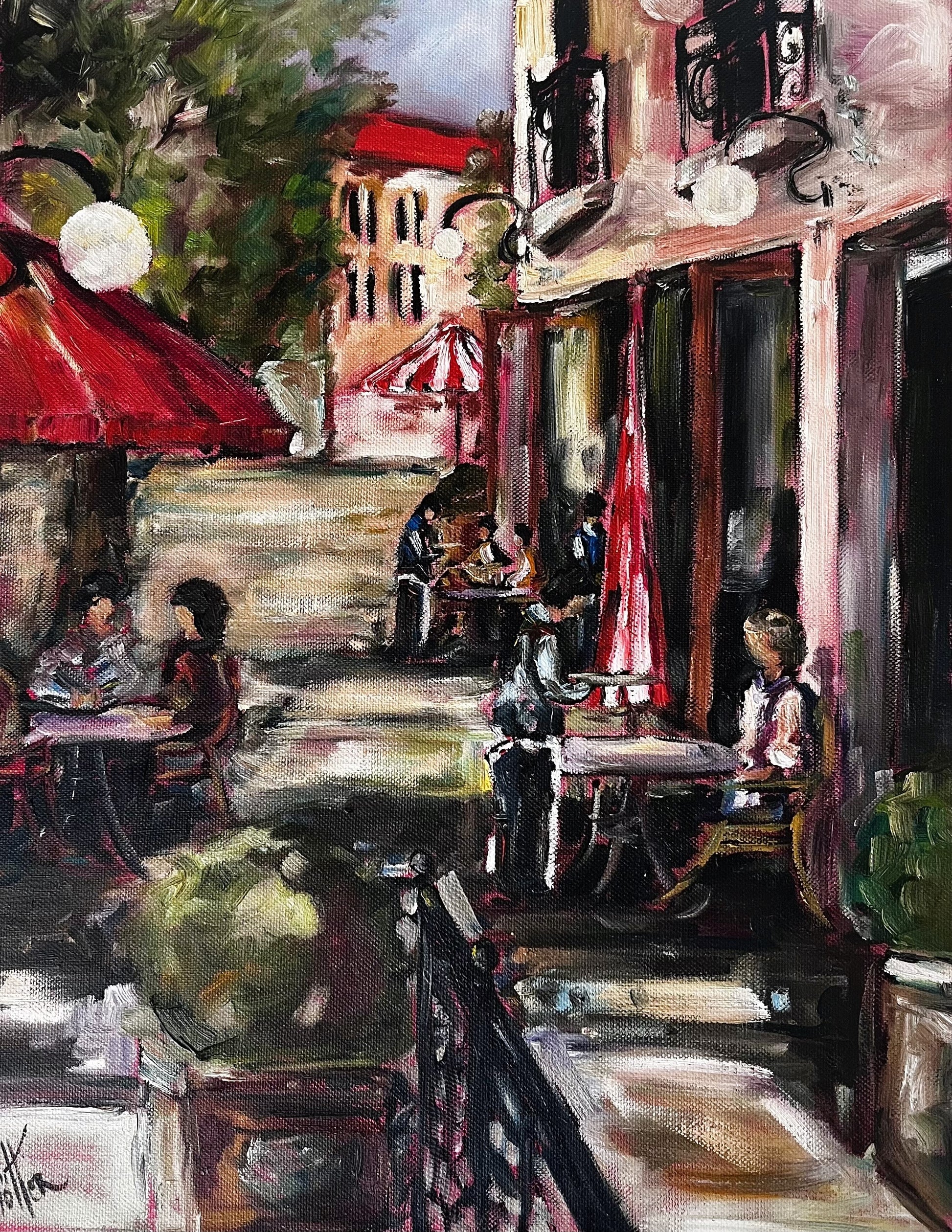 French cafe scene oil on canvas signed Lotter.