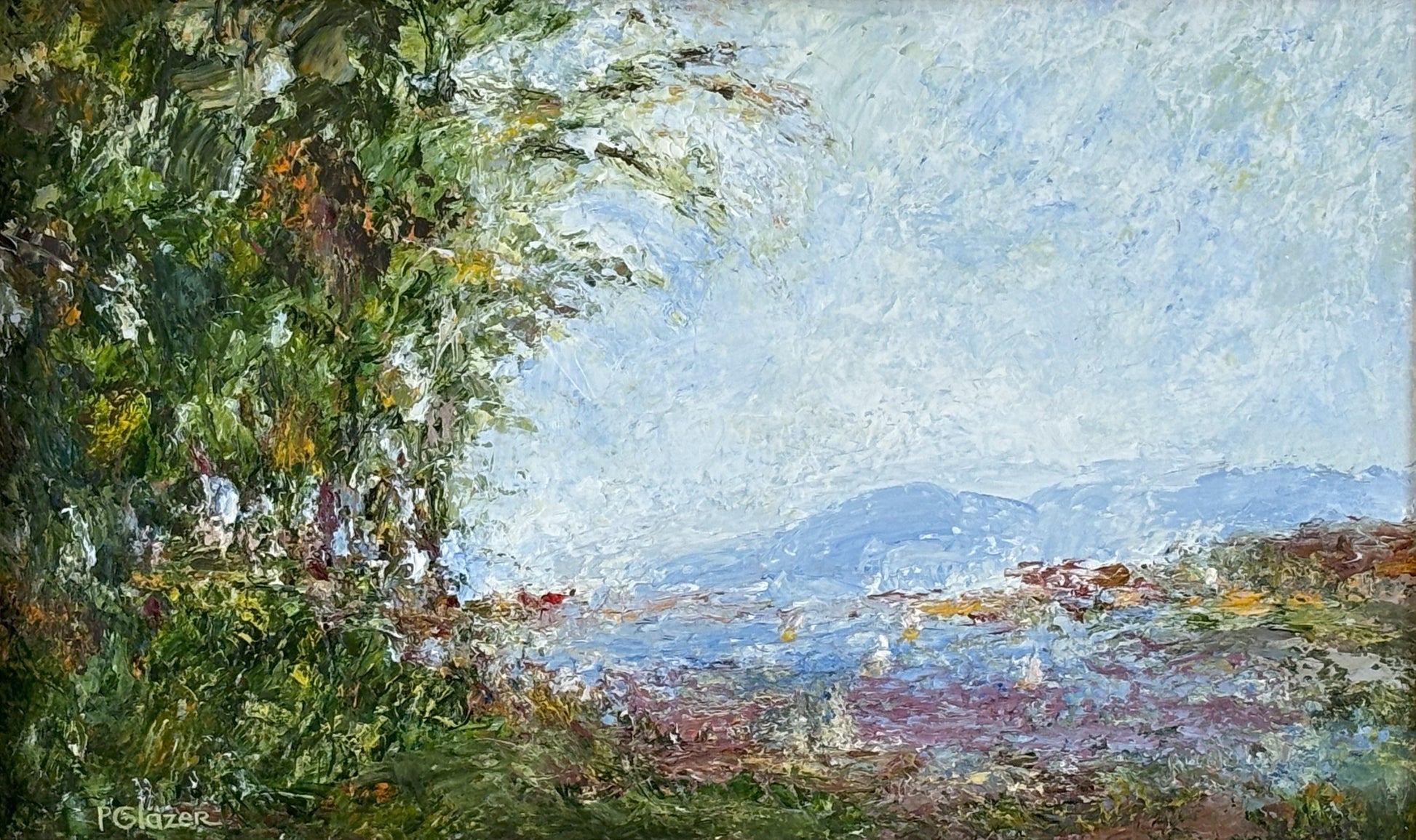 Impressionist landscape in lovey pastel colour palette. Oil on paper signed by the artist.